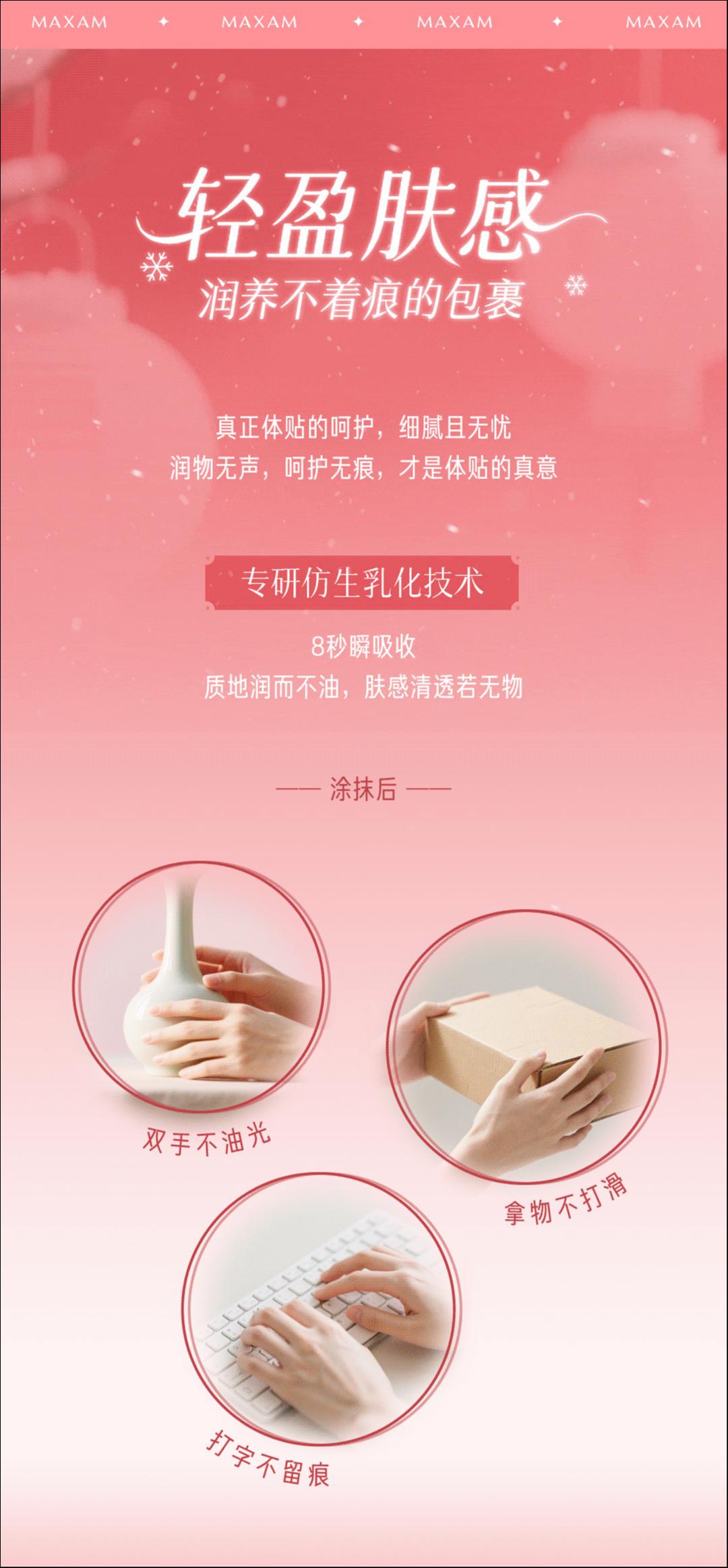 - 涂抹后双手不油光