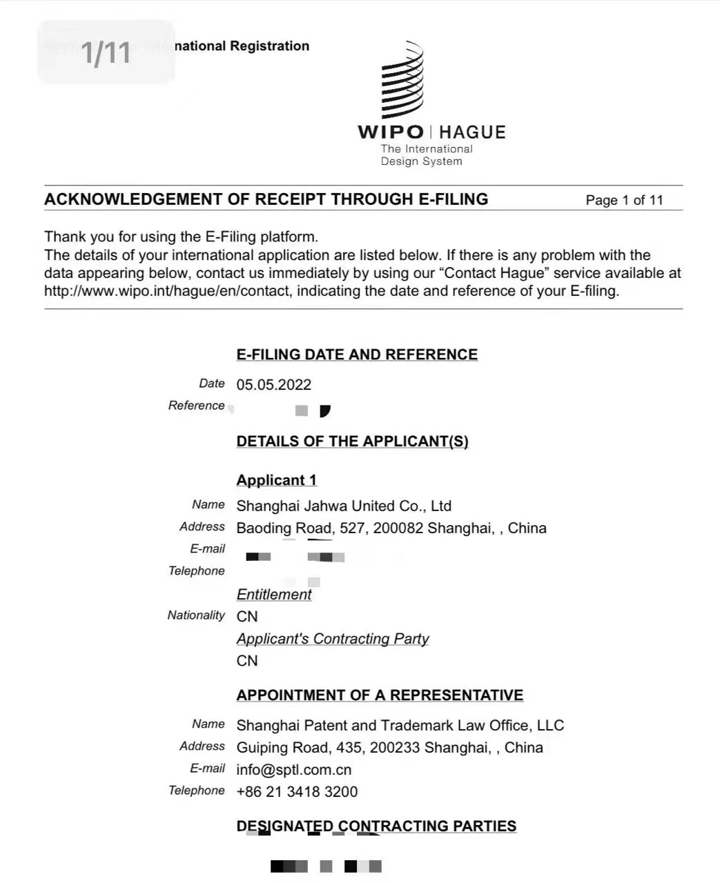 同一天,我司通过EHAGUE向WIPO(世界知识产权组织)提交了我司第一份海牙外观设计申请。