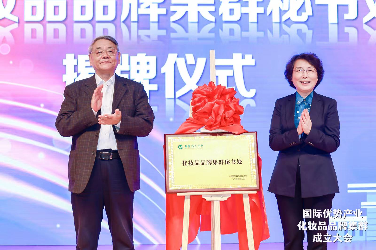 中国品牌建设促进会理事长刘平均和华东理工大学党委书记杜慧芳共同为集群揭牌
