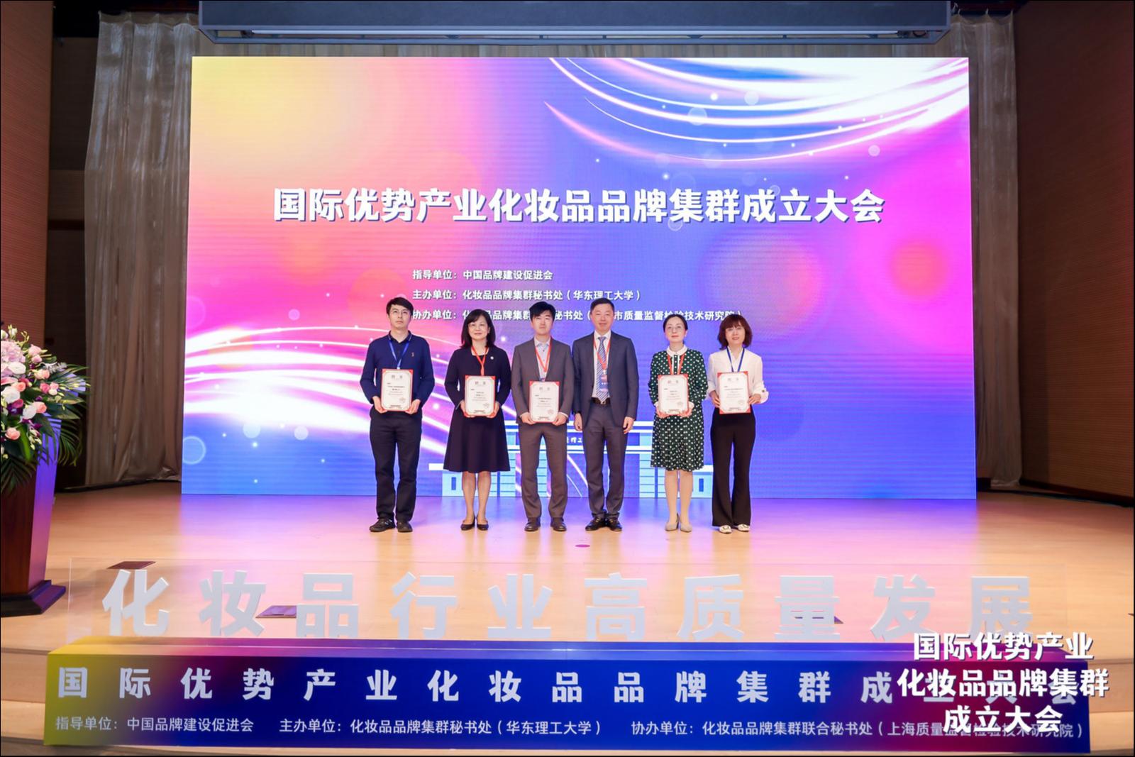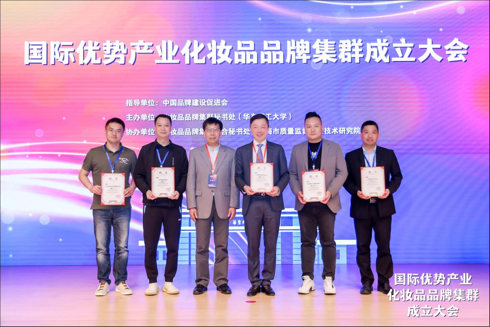 化妆品品牌集群首席专家、华东师范大学校长、党委副书记,中国工程院院士钱旭红为主席和副主席单位颁发了聘书