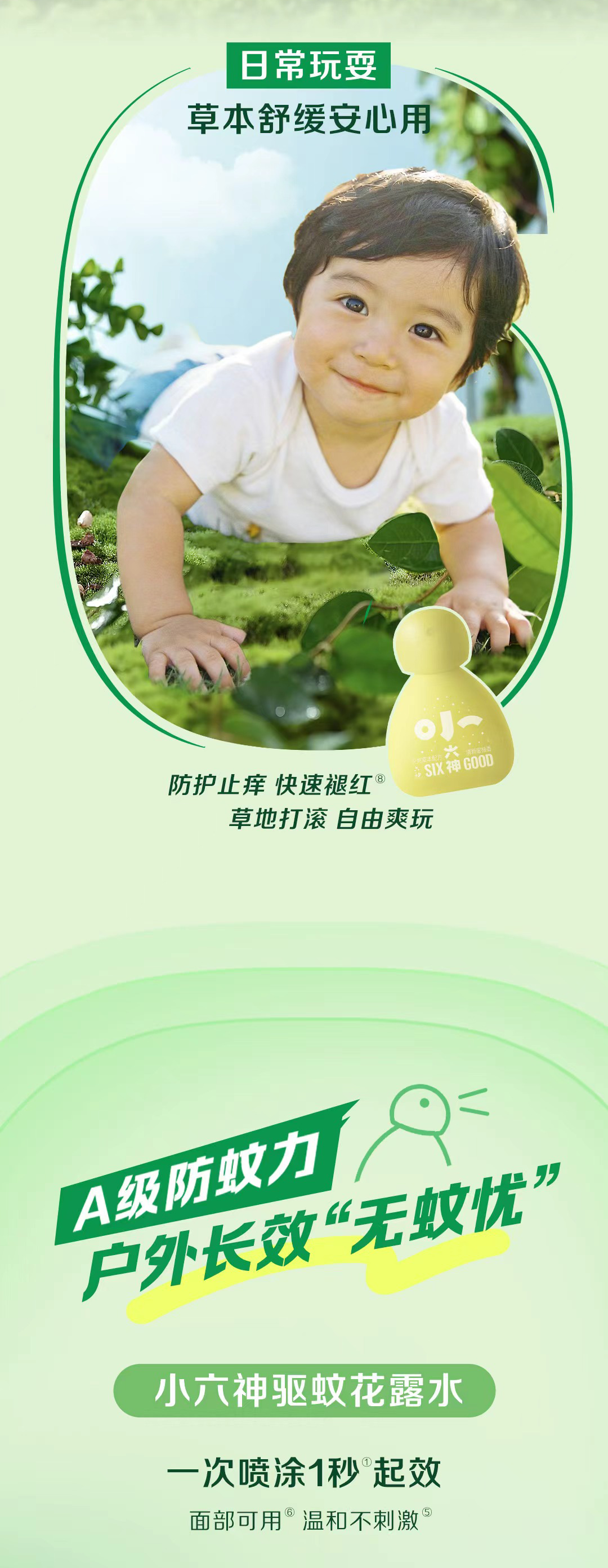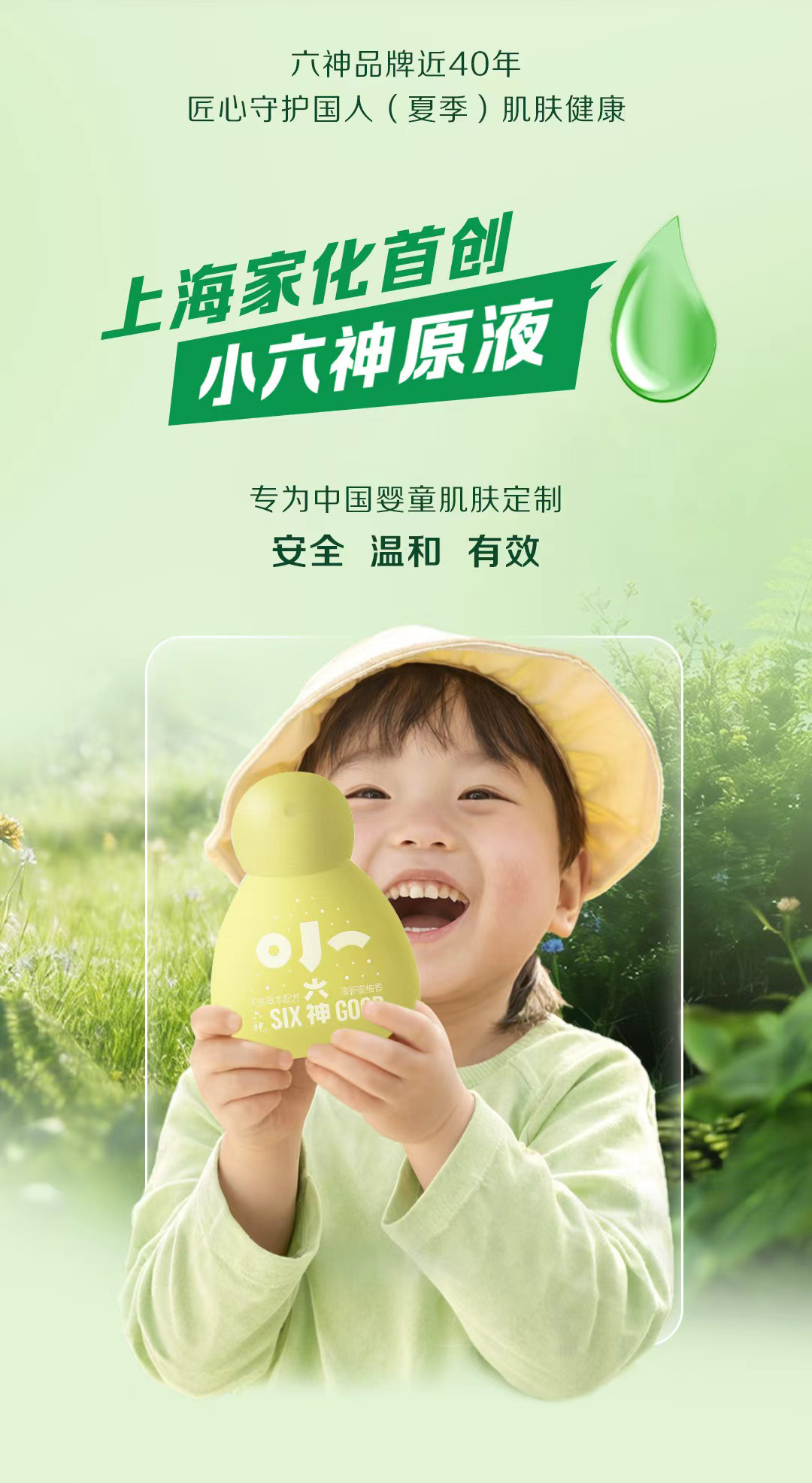“我们用一代人的信赖,守护每一代人的夏天。”这夏有小六神相伴,宝宝尽情撒欢,妈妈倍感安心。