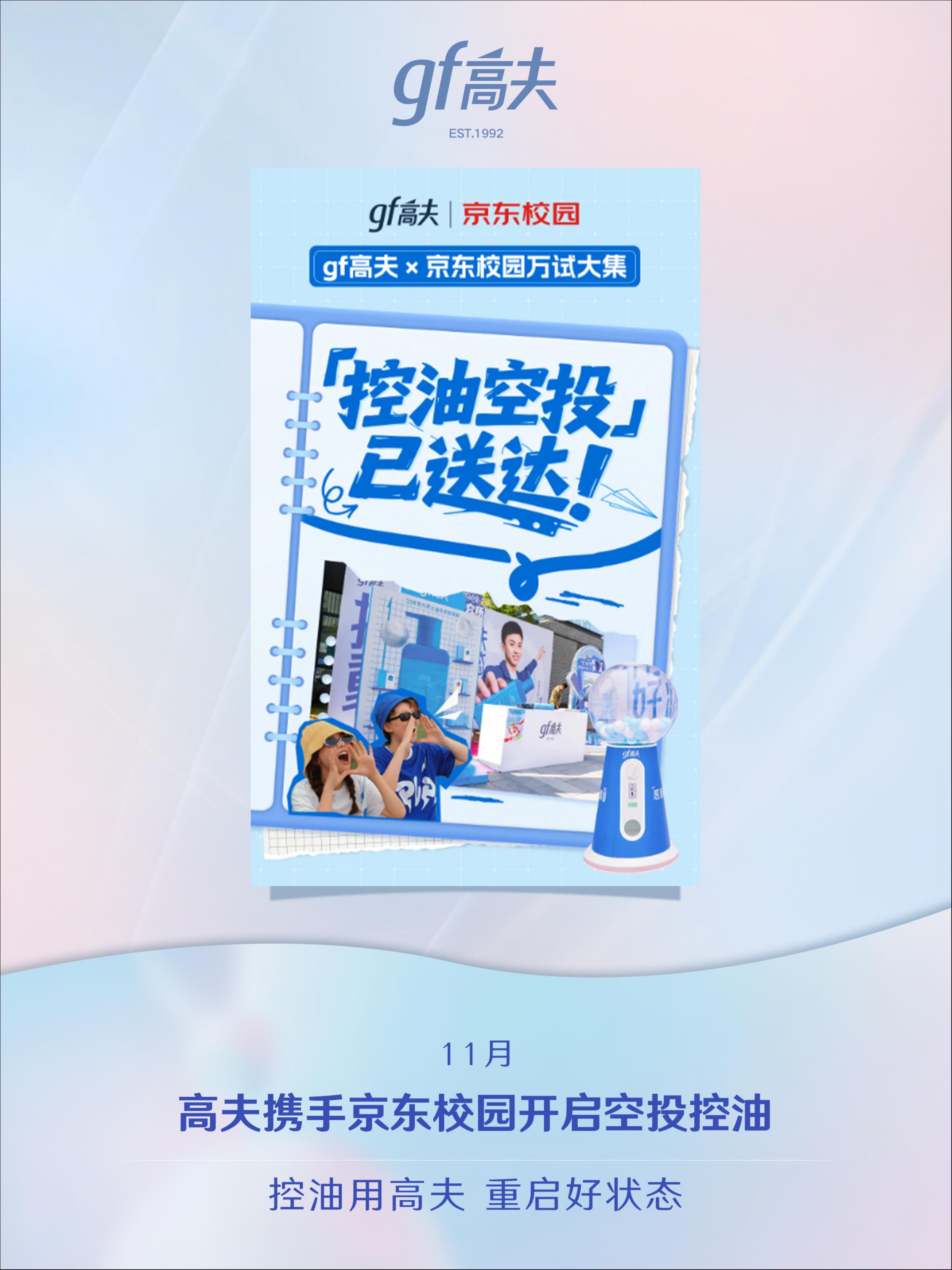 ✨11月,gf高夫携手京东校园万试大集,席卷3城10校。高夫用控油空投行动掀起了一场前所未有的清爽浪潮。