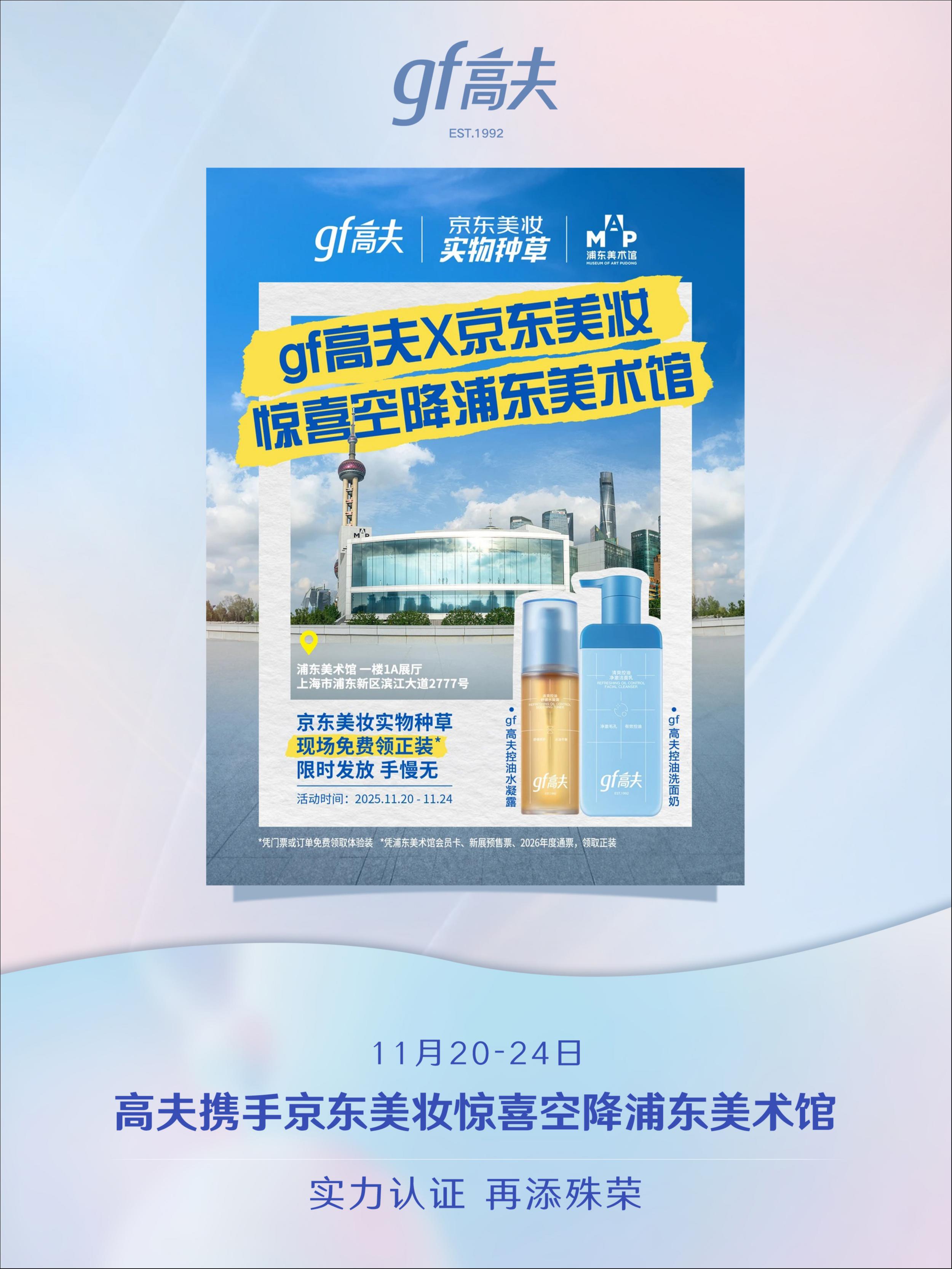 ✨11月20-24日,高夫携手@京东美妆 强势登陆浦东美术馆,带你解锁看展新姿势。观展搭子在线护航,看展体验感直接拉满。