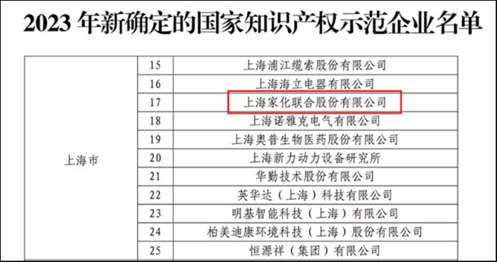 喜报!上海家化荣获“国家知识产权示范企业”称号