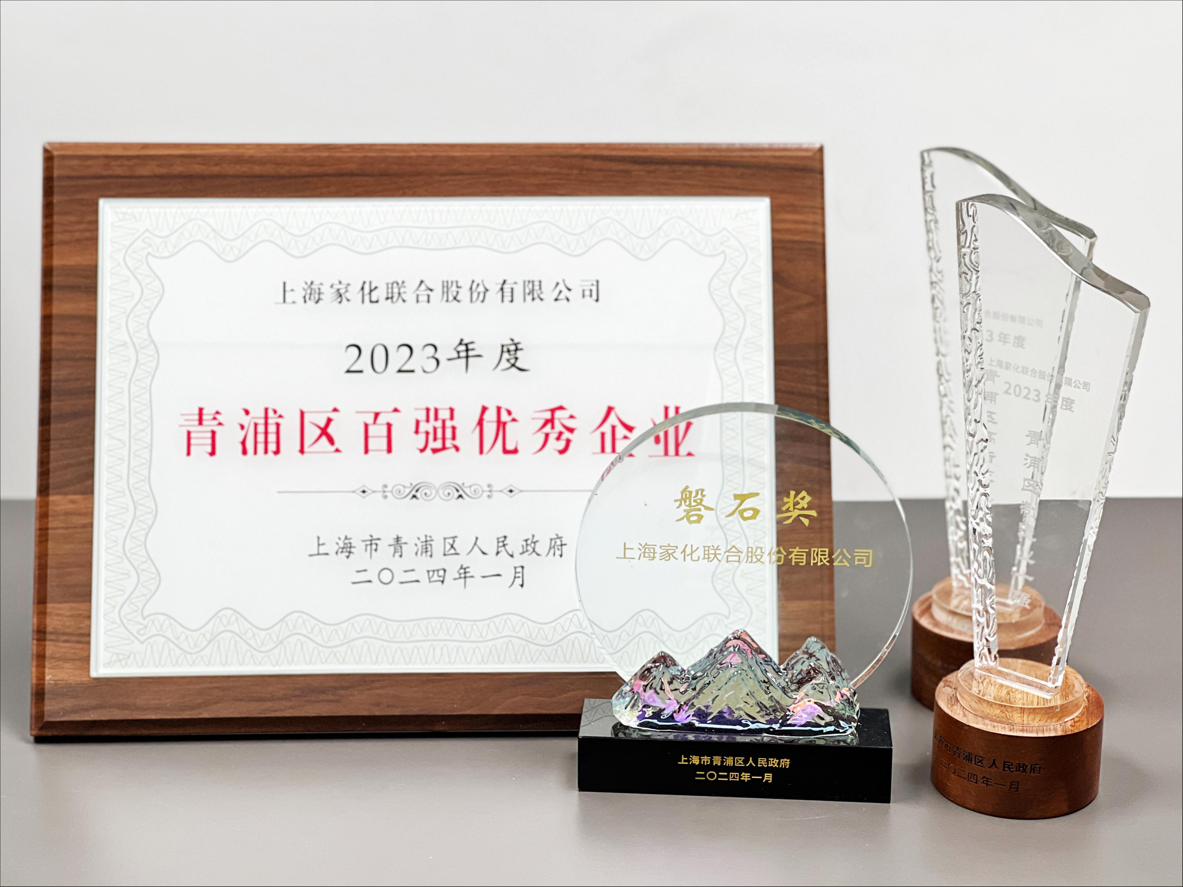 上海家化喜获2023年青浦百强优秀企业、青浦区制造业十强等多项荣誉