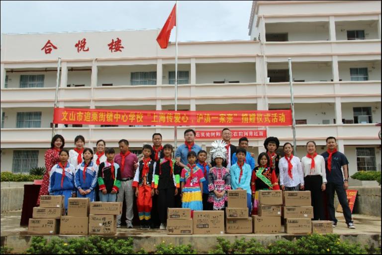 2021-07-02在建党100周年到来之际,6月30日,“上海传爱心·沪滇一家亲”爱心捐赠仪式在云南省文山市举行。上海家化与中国福利会少年宫共同发起“小伙伴云南文山学生手拉手交流援助活动”,向云南省文山市乡村振兴局、追栗街中心学校捐赠了一批爱心物资,关爱青少年和儿童健康成长,助力乡村振兴,献礼中共建党百年。
