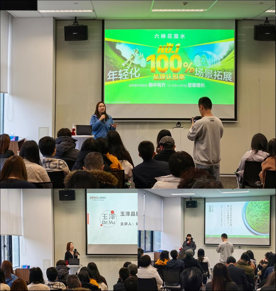 参观结束后,六神、玉泽、佰草集等核心品牌的品牌经理依次进行了分享。六神品牌2026年将创新推出更多产品,进一步拓展至婴童等不同人群;通过肖战代言人策略、驱蚊科技背书及打造“逢6必爽节”等营销方式,触达更广泛的消费群体。玉泽品牌去年已成功打造第二代干敏霜为独立亿元单品,步入2026年,玉泽全新推出重磅单品特润霜,持续深耕皮肤屏障赛道。佰草集始终坚守“美自根源养有方”的品牌理念,在去年进行了品牌焕新升级,推出仙草油等新品,打造出“新七白”“修源五行”等多个产品线。