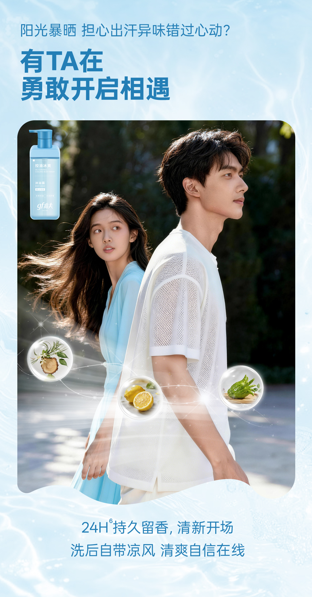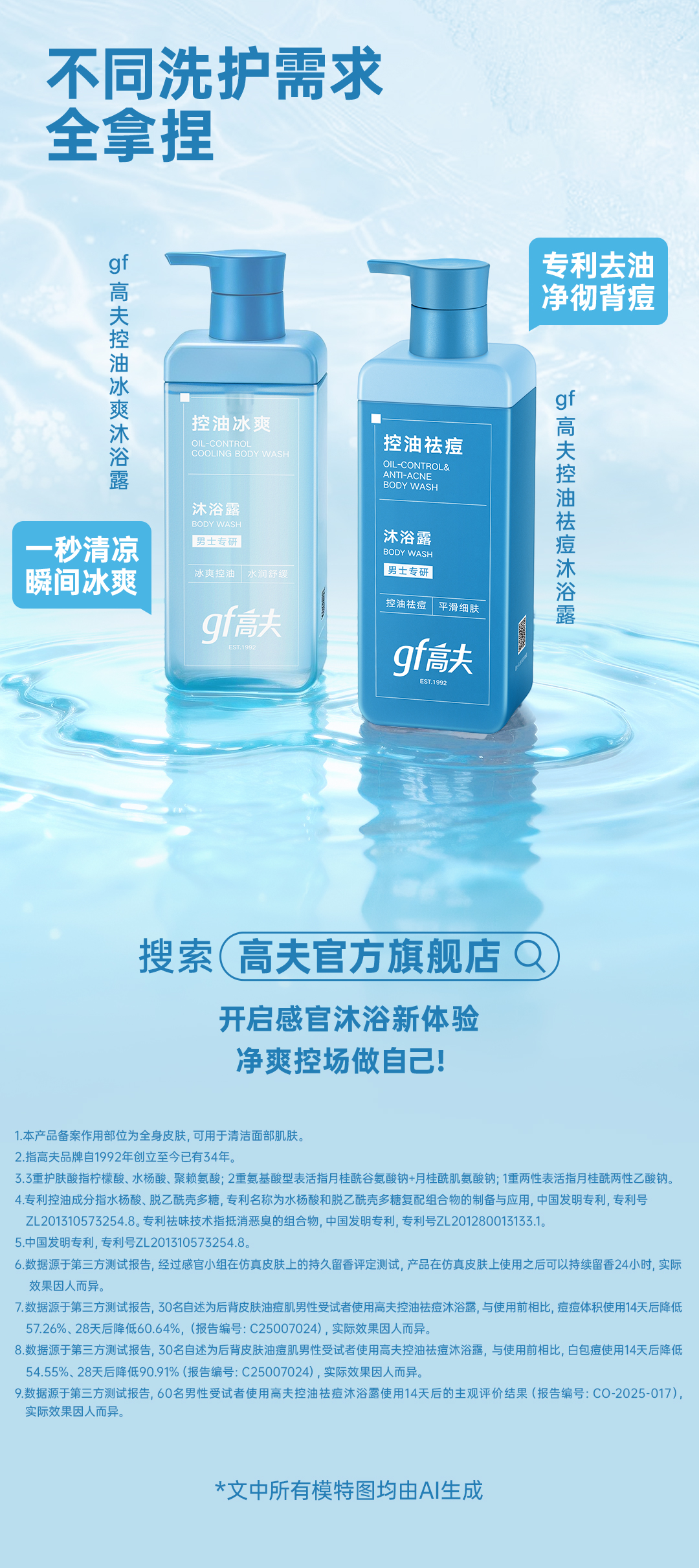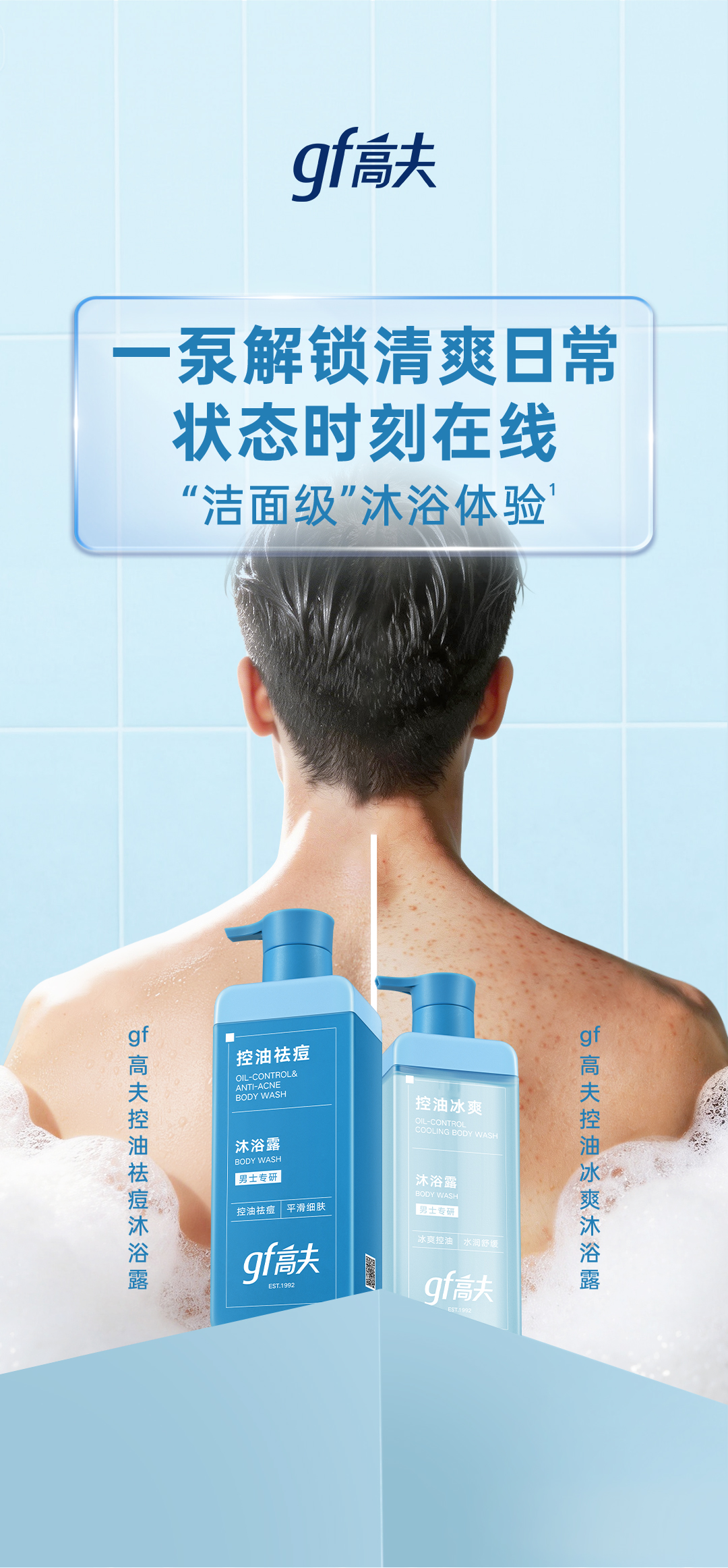 - gf高夫控油冰爽沐浴露:一秒清凉,瞬间冰爽。