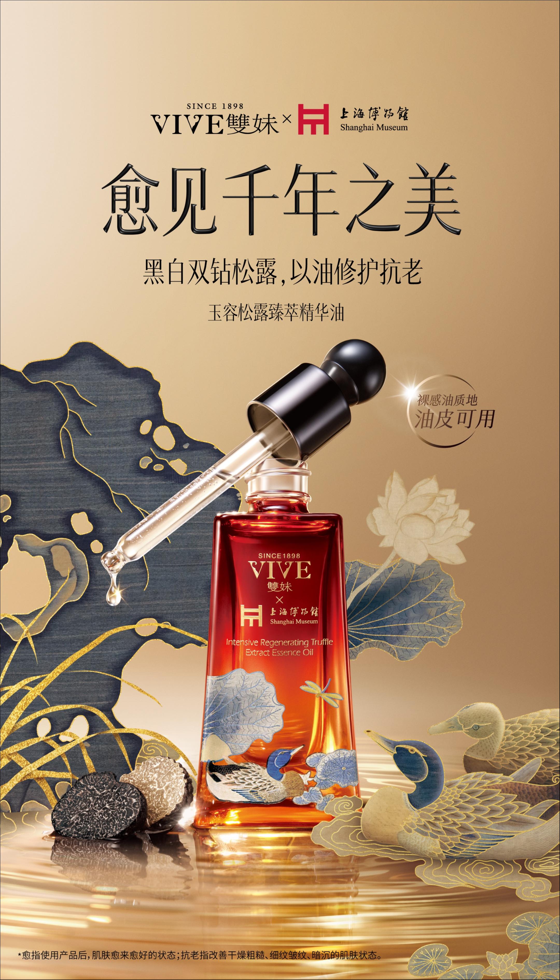 雙妹还与上海博物馆进行联名,将女性匠人朱克柔的缂丝作品《莲塘乳鸭图》运用至品牌重磅新品——玉容松露臻萃精华油。缂丝的制作需要耗费巨大的心力和时间,朱克柔凭借自己高超的技艺和匠心,成为罕见流传缂丝作品的女性匠人,她的勇敢自信的力量,正是上海家化时下积极倡导的。