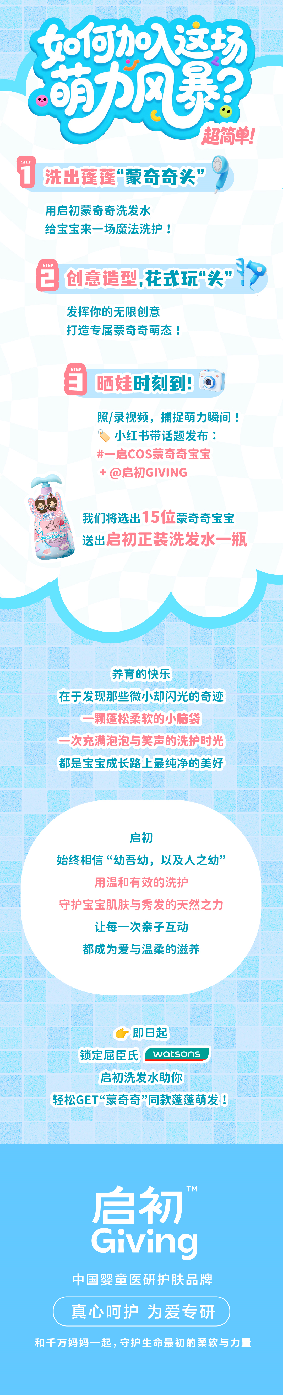 启初X屈臣氏X蒙奇奇|联名包装上新,蓬蓬头萌力全开!