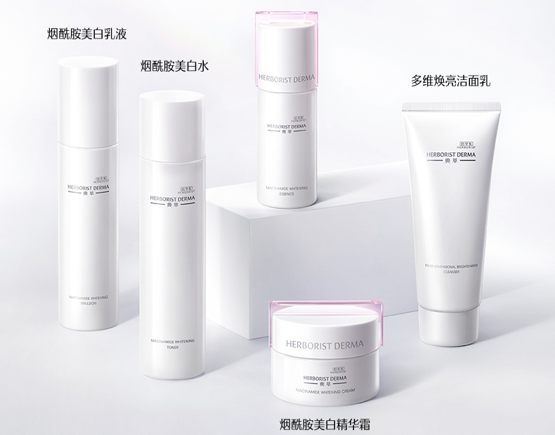 A:系列包含5款产品:佰草集典萃烟酰胺美白水(国妆特字20221471)、佰草集典萃烟酰胺美白淡斑精华露(国妆特字20232694)、佰草集典萃烟酰胺美白乳液(国妆特字20221480)、佰草集典萃烟酰胺美白精华霜(国妆特字20232179)、佰草集典萃多维焕亮洁面乳(沪G妆网备字2023002012),全系列(除洁面以外产品)拥有祛斑美白特证,从洁面到面霜完整覆盖护肤全流程。