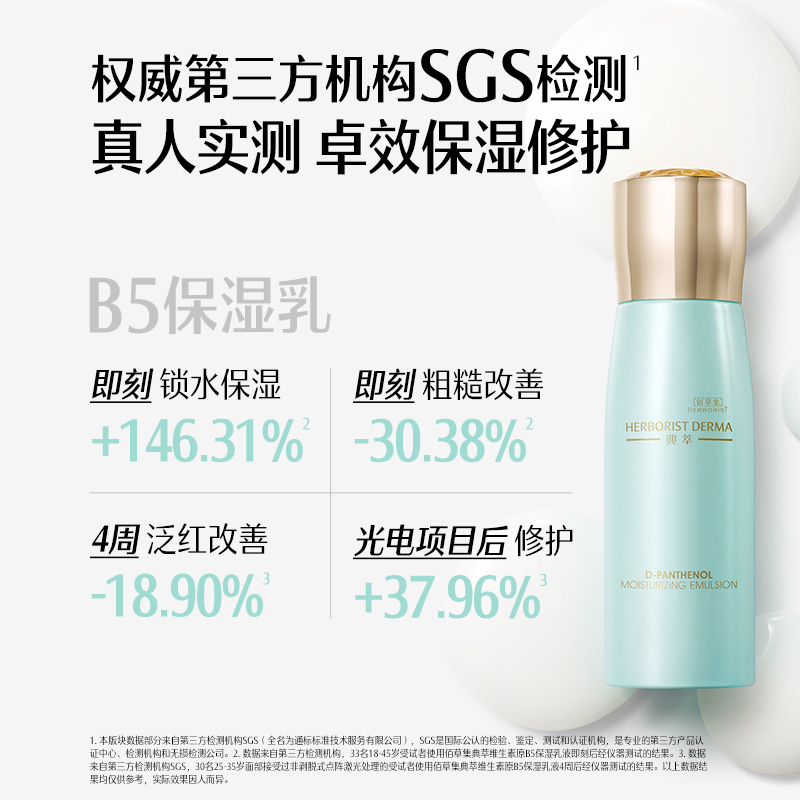 A:典萃B5水乳经过SGS检测,30名25-35岁面部接受过非剥脱式点阵激光处理的受试者连续使用28天,0例出现不良反应。B5水1小时光泽提升+19.14%,B5乳液28天项目后修护+37.96%,适合光电项目后修护使用。